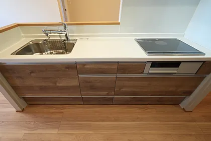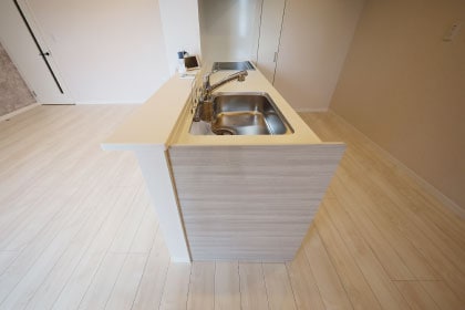 リビングにいる人と会話を楽しみながら料理ができる、対面式カウンターキッチンを採用しています。