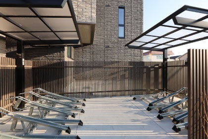 防犯性、プライベート性を高めるシャッター雨戸を設置。