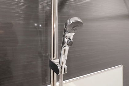 高級感と清潔感があるメタル調のシャワーヘッド。