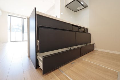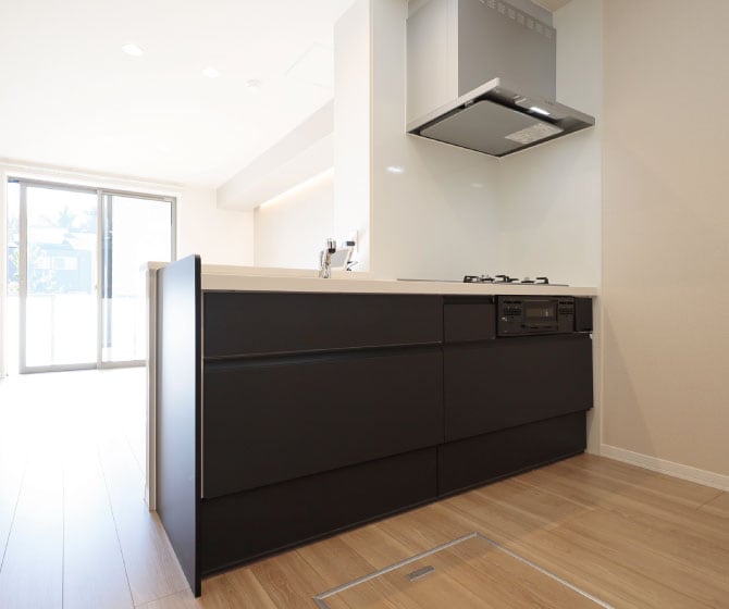 リビングにいる人と会話を楽しみながら料理ができる、対面式カウンターキッチンを採用しています。