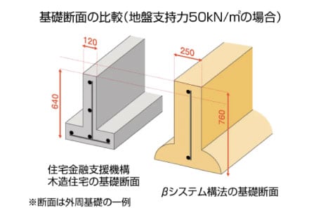 フレキシブルβシステム専用の独自設計の大型鉄筋コンクリート連続基礎を採用。