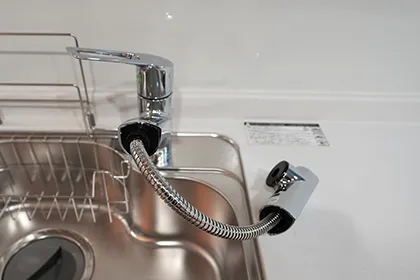 シンクの隅々までしっかり洗える浄水機能付き引き出しシャワー水栓。