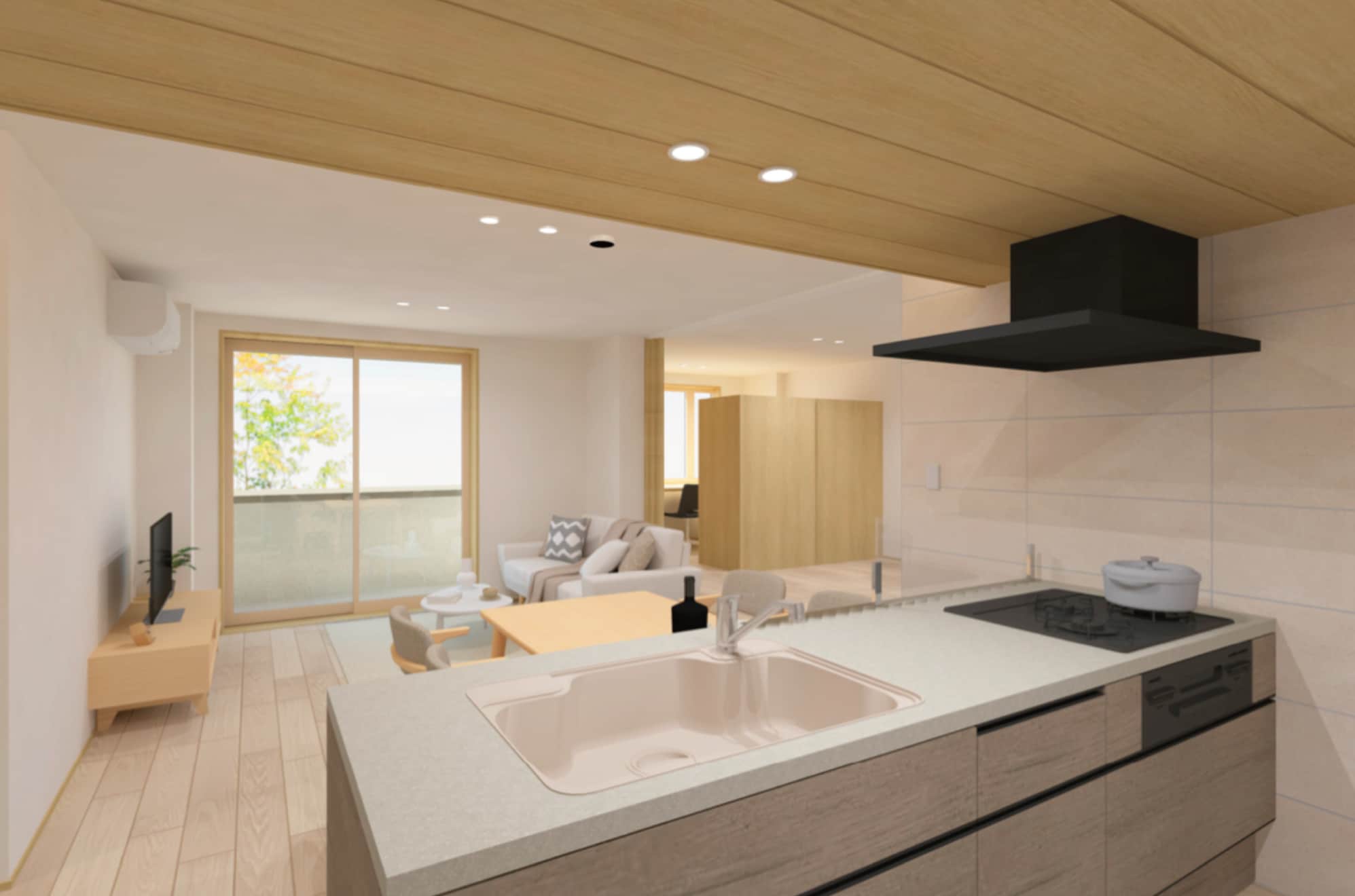 101号室 Living Dining Kitchen 完成予想パース