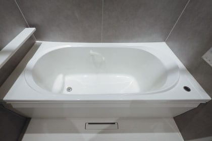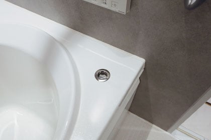 浴槽に手を入れずに、浴槽の縁の排水栓を一押しするだけで排水できます。