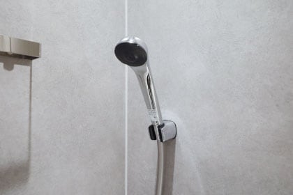 高級感と清潔感があるメタル調のシャワーヘッド。