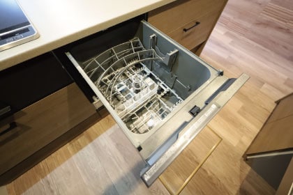 場所をとらずに家事効率を上げる、ビルトイン式の食器洗浄乾燥機を装備。美しさと機能性を兼ね備えた便利な設備です。