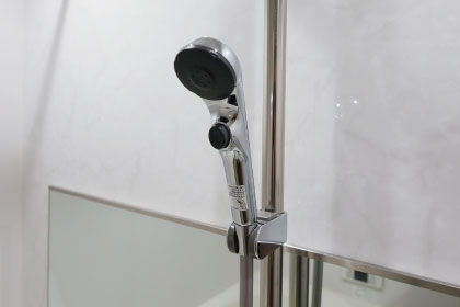 高級感と清潔感があるメタル調のシャワーヘッド。