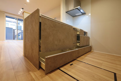 リビングにいる人と会話を楽しみながら料理ができる、対面式カウンターキッチンを採用しています。