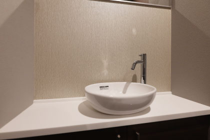 高級感のある人造大理石を採用。上質な風合いと、お手入れしやすさが特徴です。