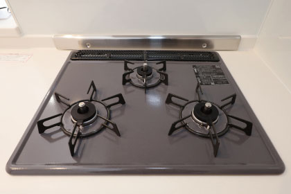 お手入れしやすく、見た目にも美しいハイパーガラスコートトップ3口ガスコンロを採用しています。