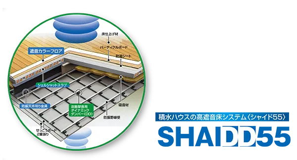 積水ハウスが独自に開発した高遮音床システム「シャイド55」が、