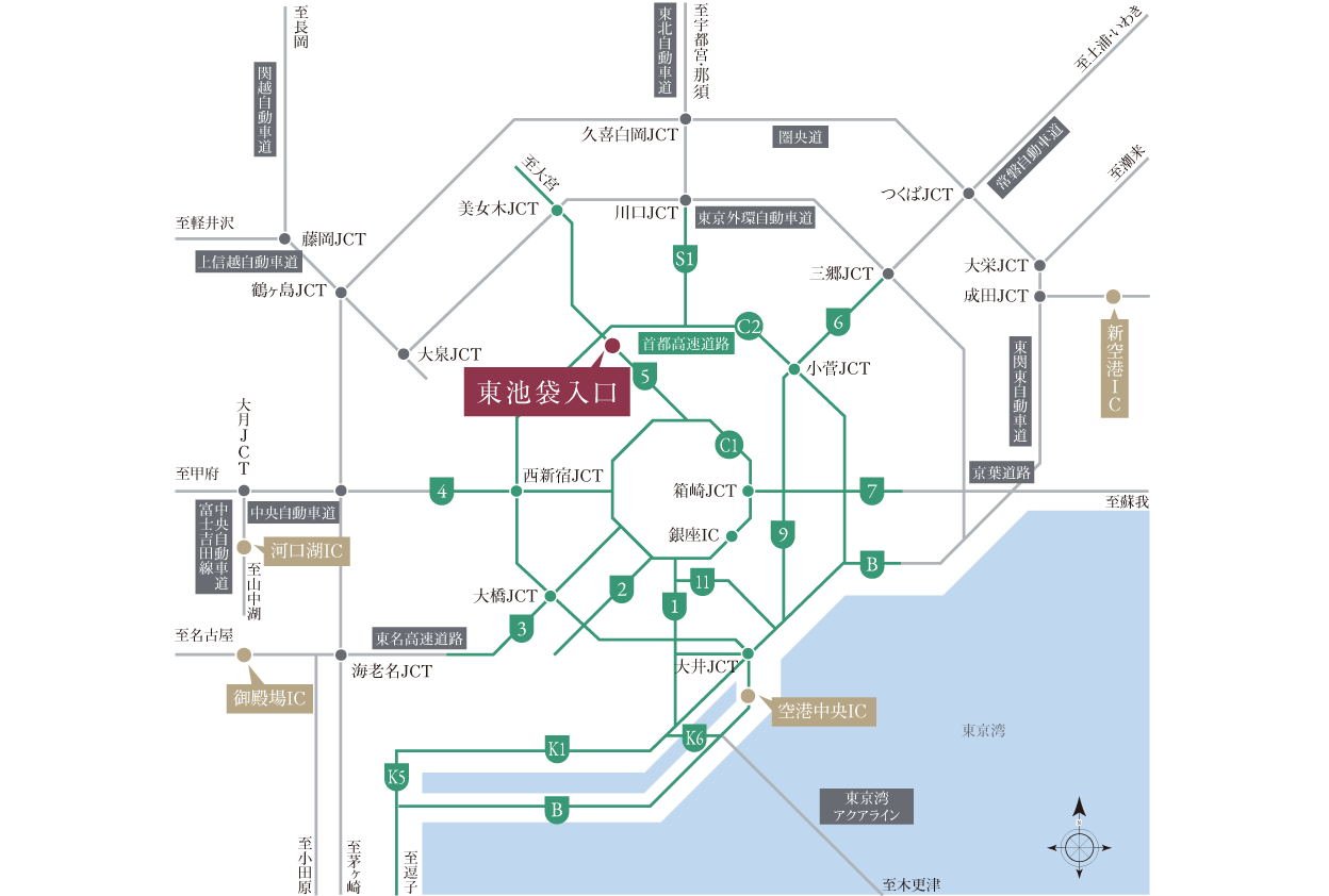 首都高速道路の「東池袋 入口」へ約1.2㎞。