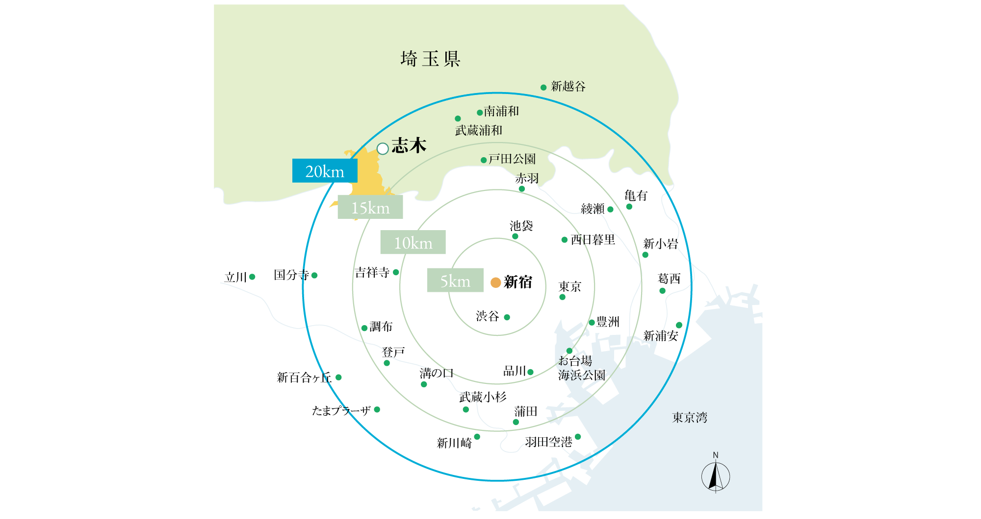 新宿まで20km圏内
